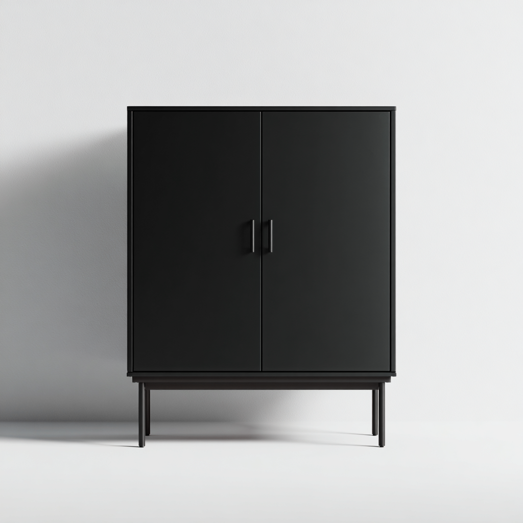 Credenza-legno-metallo-90x45x150 cm-nero-design moderno