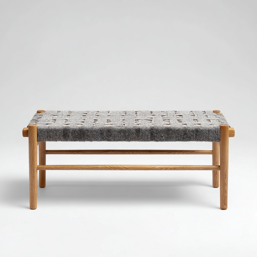 Panca per letto-pelle legno-118x42x47 cm-grigio-design nordico