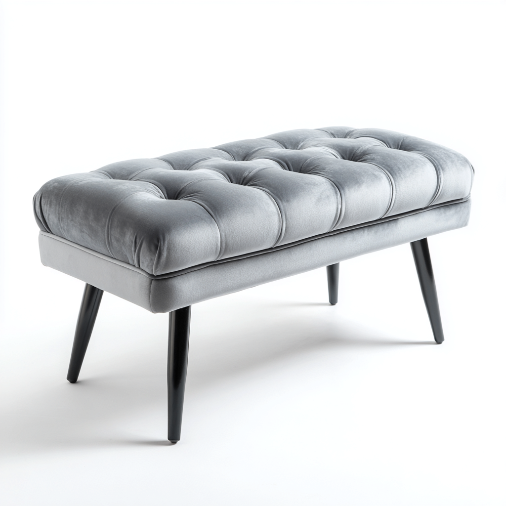Panca per letto-velluto legno-108x42x47 cm-grigio-design classico