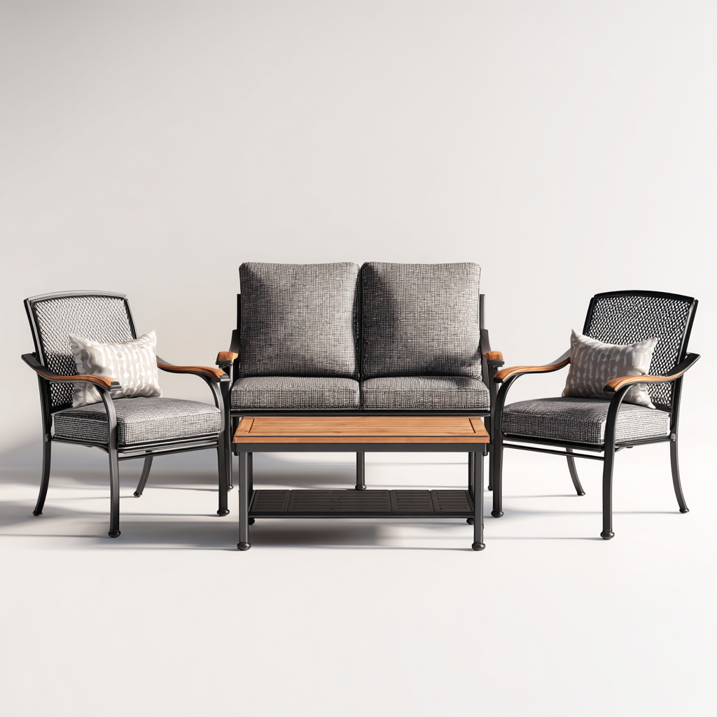 Set salotto da terrazza-acciaio-tessuto-legno-128x76x78 cm-grigio-nero-moderno