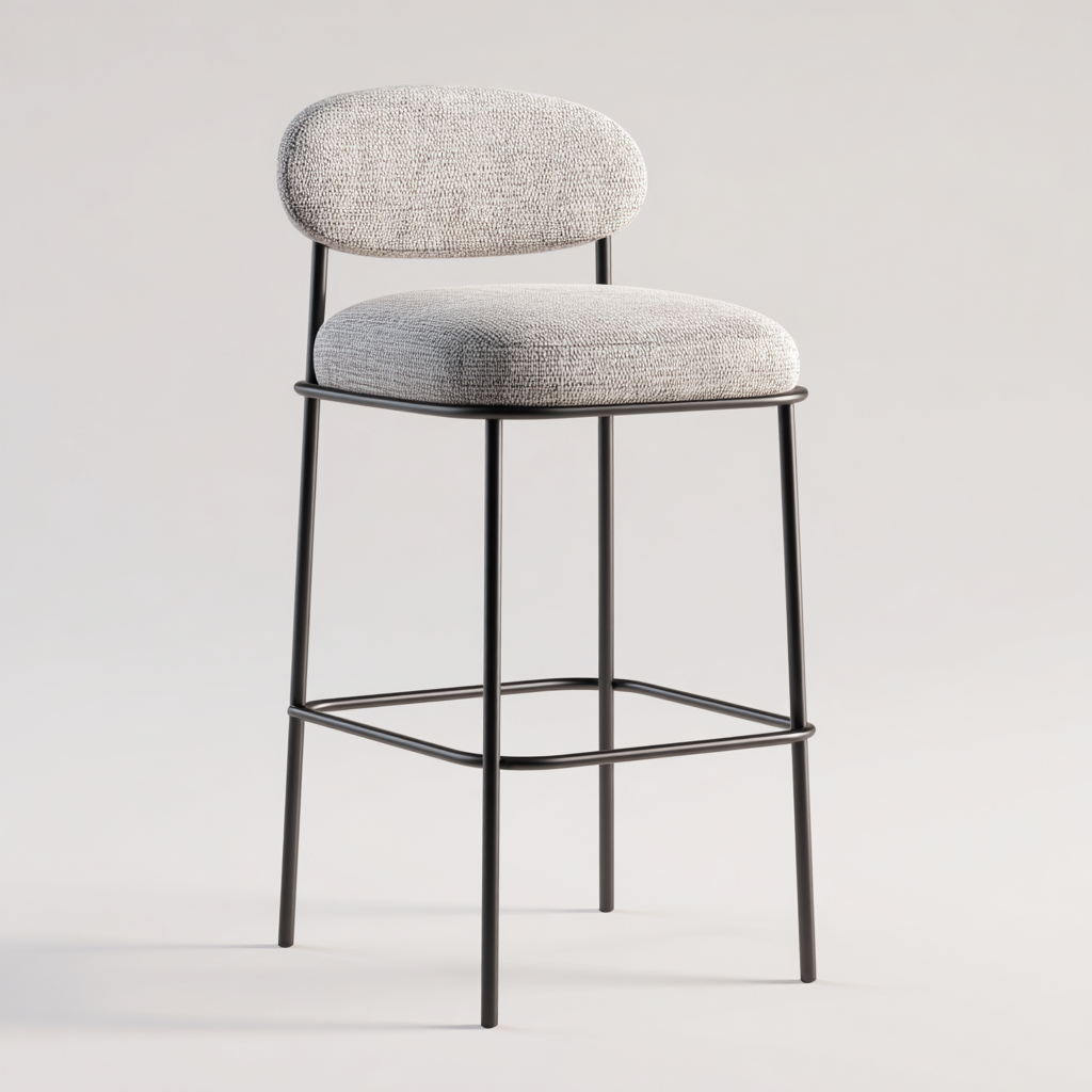 Sgabello da bar-tessuto-metallo-49x47x109 cm-grigio-metallo-design moderno
