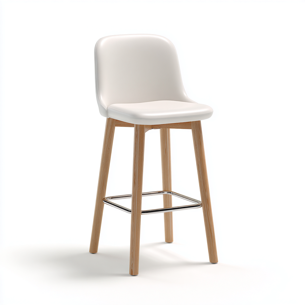 Sgabello da bar-pelle-legno-metallo-46x48x106 cm-bianco-marrone-metallo-design moderno
