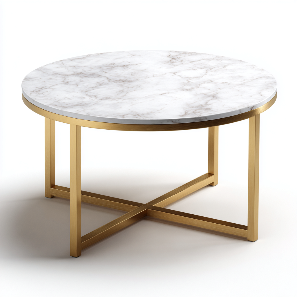 Tavolino da caffè-marmo-metallo-80x80x45 cm-bianco-oro-design moderno