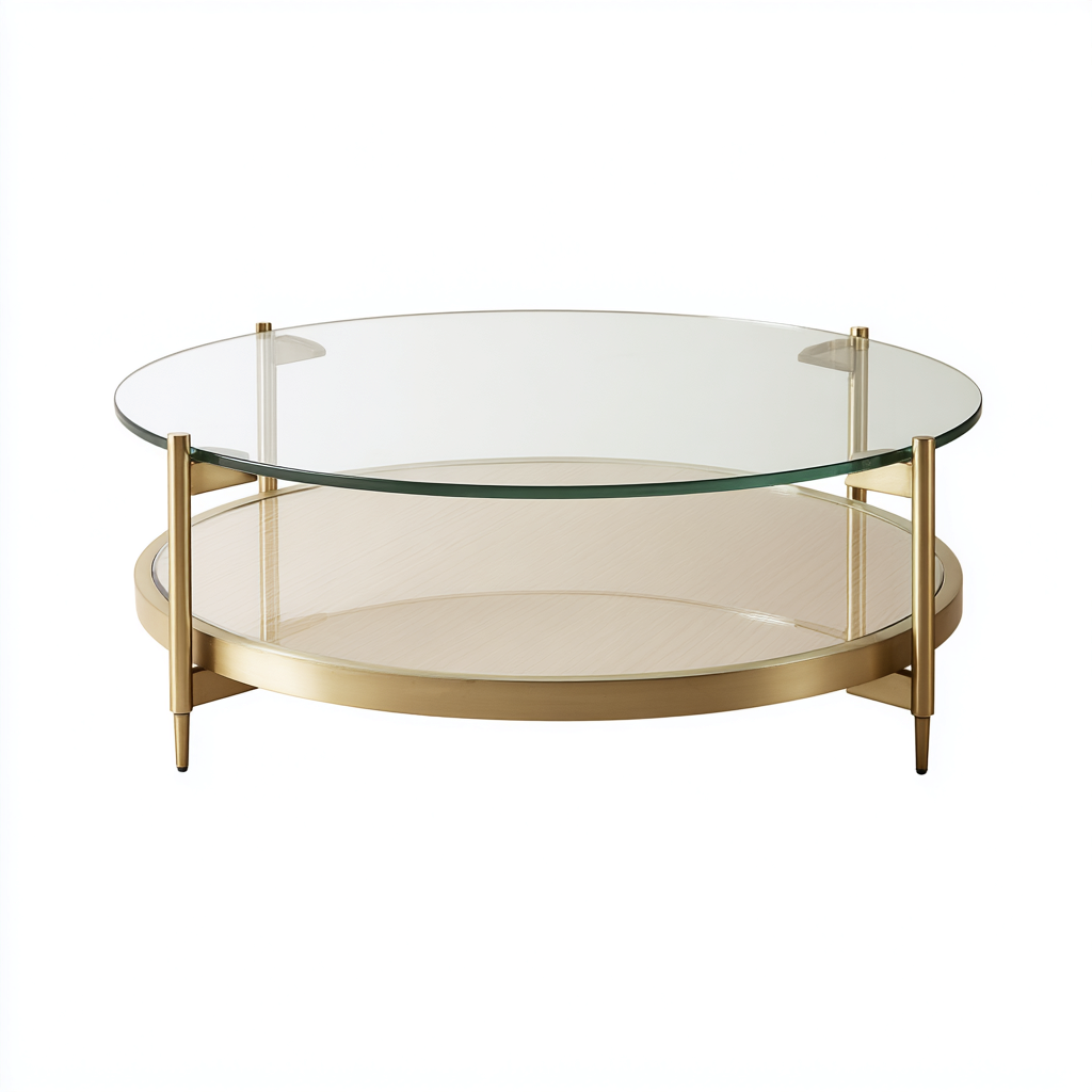 Tavolino da caffè - vetro-metallo - 90x90x42 cm - oro - design moderno
