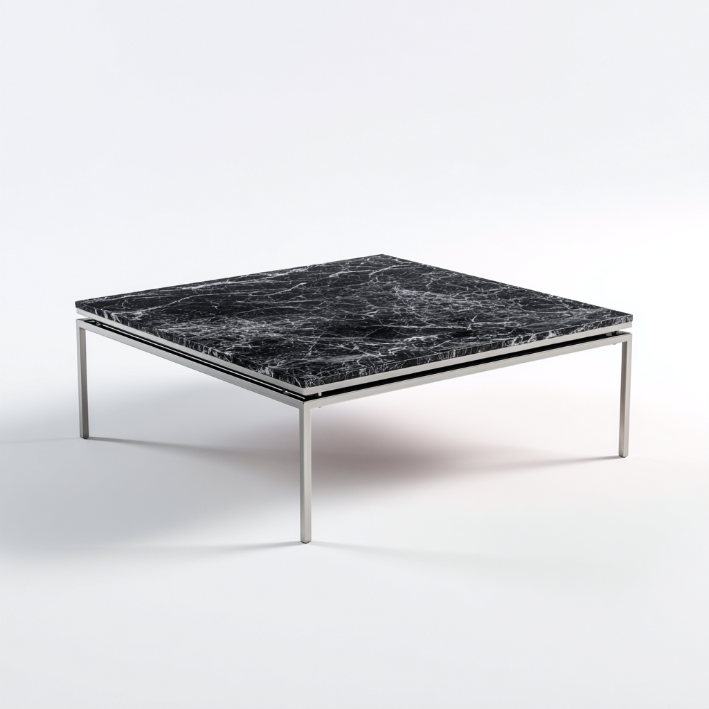 Tavolino da caffè-marmo-metallo-90x90x32 cm-nero-design moderno