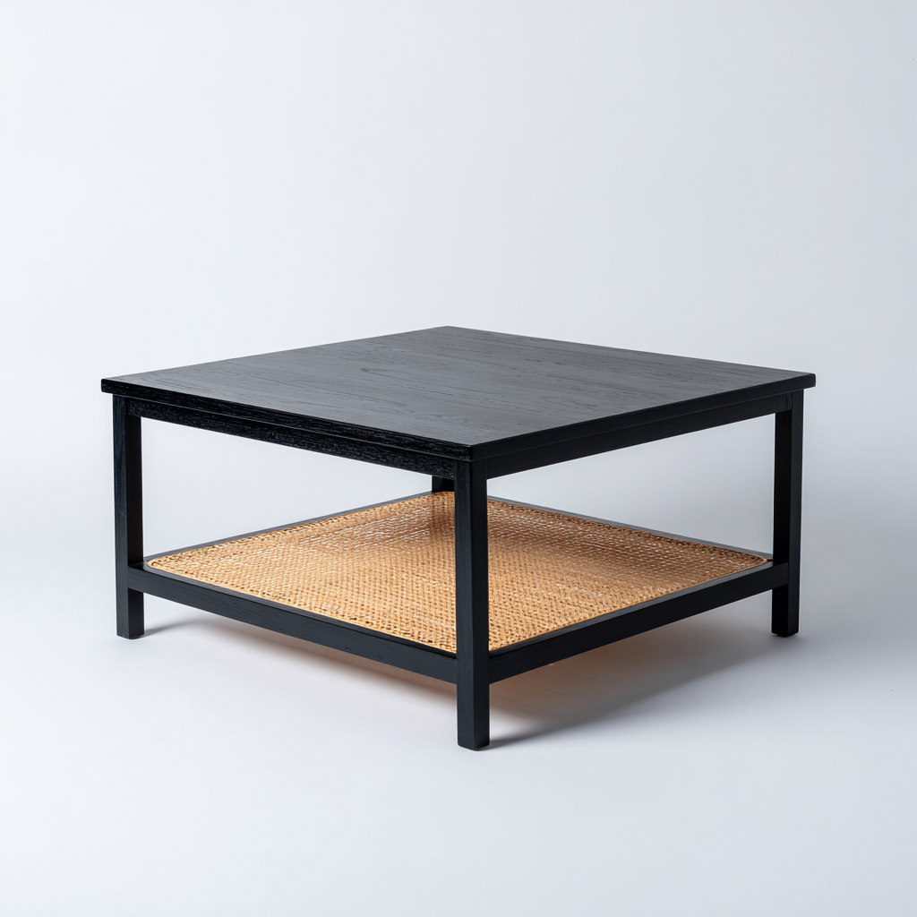 Tavolino da caffè-legno-moggi intrecciati-75x75x42 cm-nero-naturale-design moderno