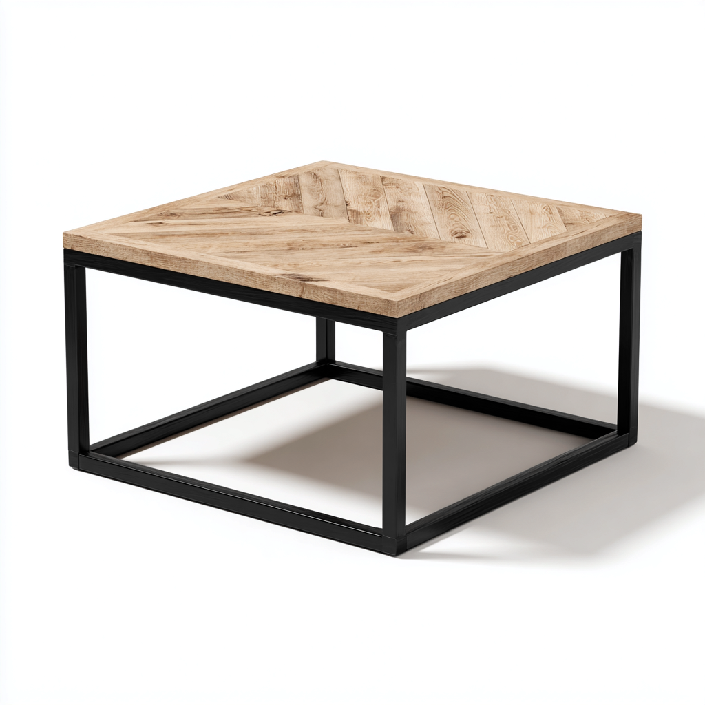 Tavolino da caffè-legno-metallo-70x70x38 cm-naturale-nero-design industriale