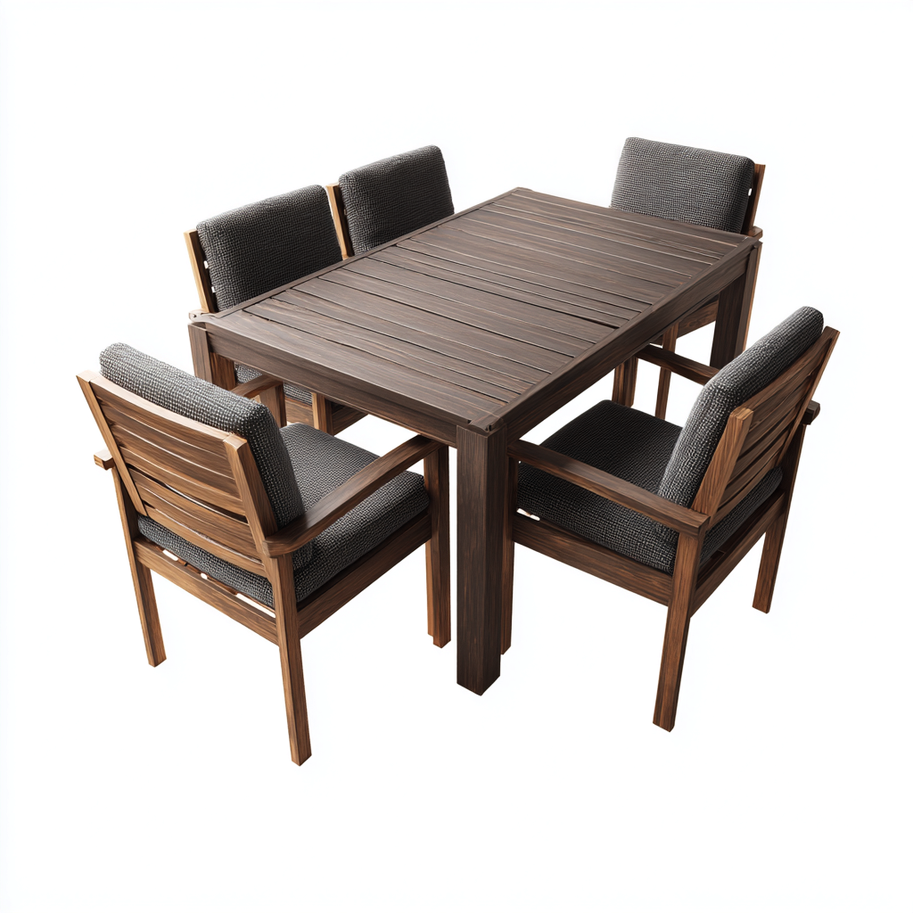 Tavolo e sedie-legno-tessuto-160x90x75 cm-marrone-grigio-design moderno