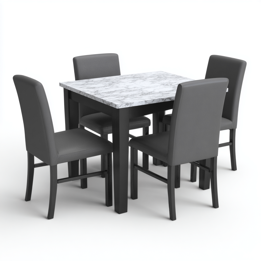 Tavolo e sedie-marmo-legno-tessuto-120x120x76 cm-grigio-nero-uso domestico design moderno