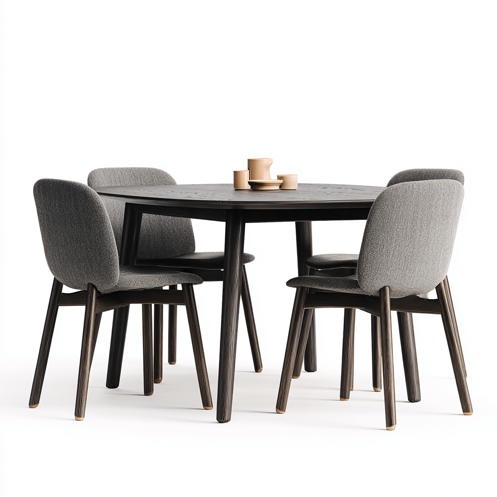 Tavolo e sedie-legno-tessuto-130x130x75 cm-nero-grigio-design moderno