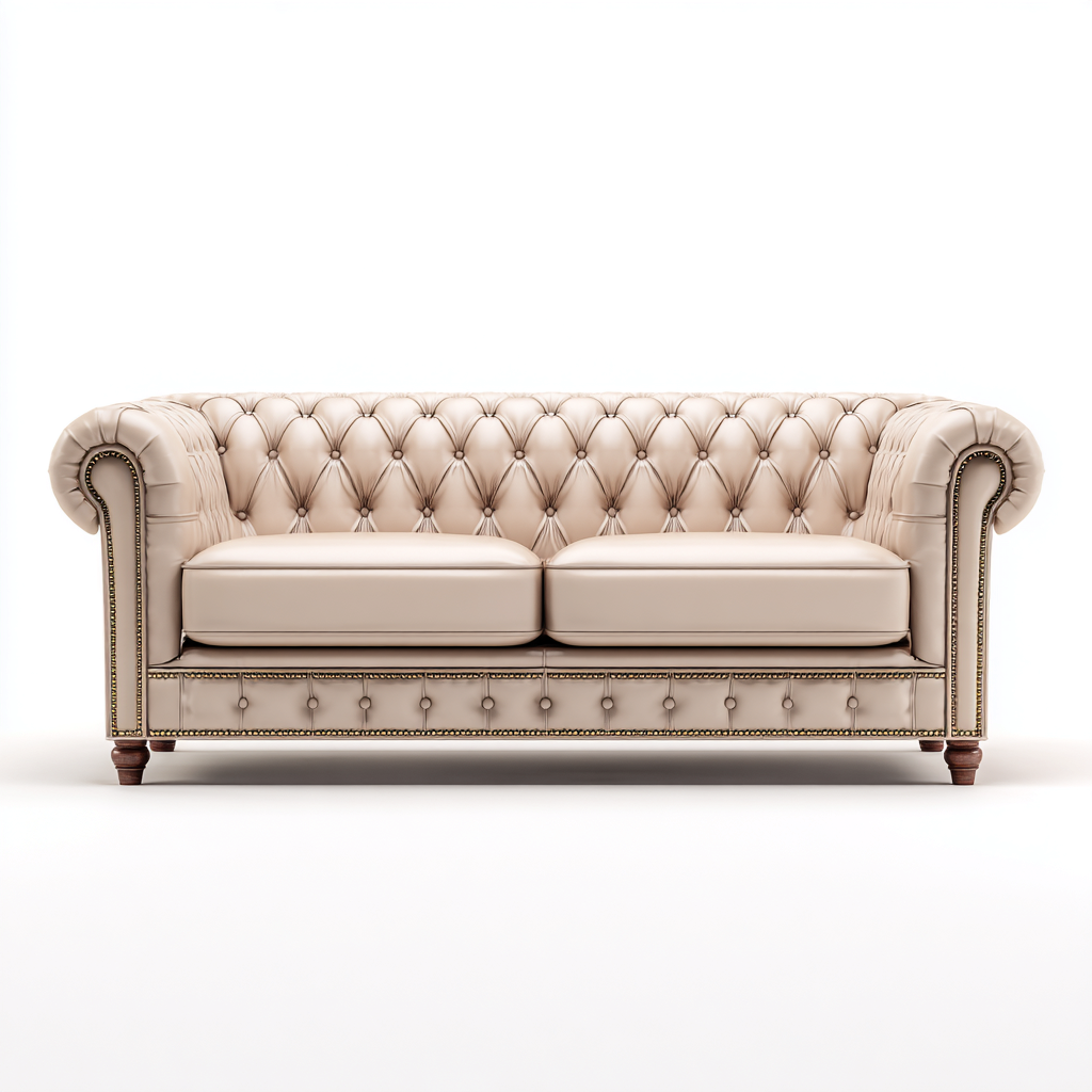Il rivestimento in pelle beige offre una superficie liscia e uniforme. La struttura interna garantisce stabilità, mentre i dettagli rifiniti mettono in risalto l'identità tradizionale del divano.