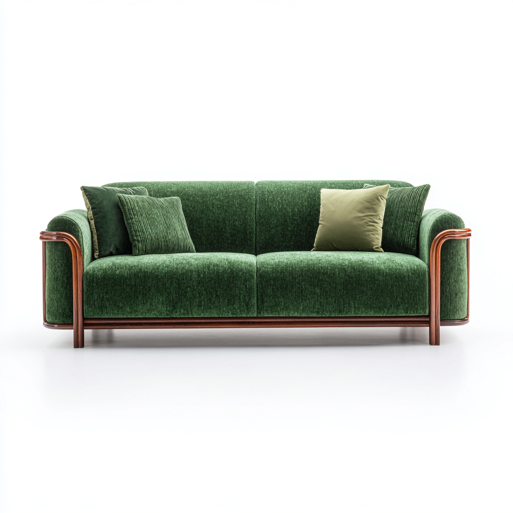Questo divano a 3 posti in tessuto verde scuro presenta una struttura armoniosa caratterizzata da linee arrotondate e un'estetica contemporanea. Il profilo elegante lo rende adatto a soggiorni dal gusto ricercato.
