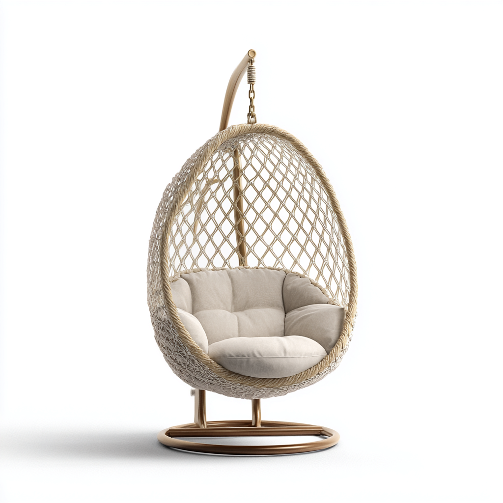 Questa poltrona sospesa da giardino presenta un design luminoso ed elegante, ideale per creare un'area relax raffinata negli spazi esterni. La seduta avvolgente offre un comfort naturale per terrazze, balconi e giardini.