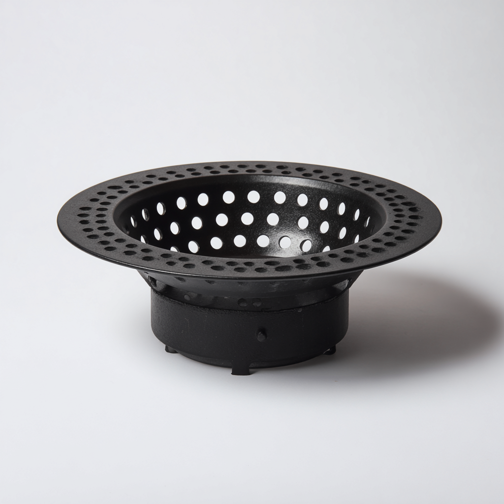 La disposizione dei fori migliora la circolazione dell'aria, favorendo un'accensione più efficiente. Il profilo compatto permette un facile posizionamento su superfici stabili.