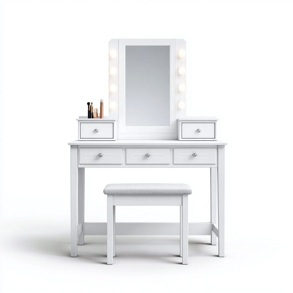 Toeletta moderna progettata per offrire uno spazio dedicato alla cura personale. La struttura lineare e la finitura bianca valorizzano ambienti luminosi e contemporanei.
